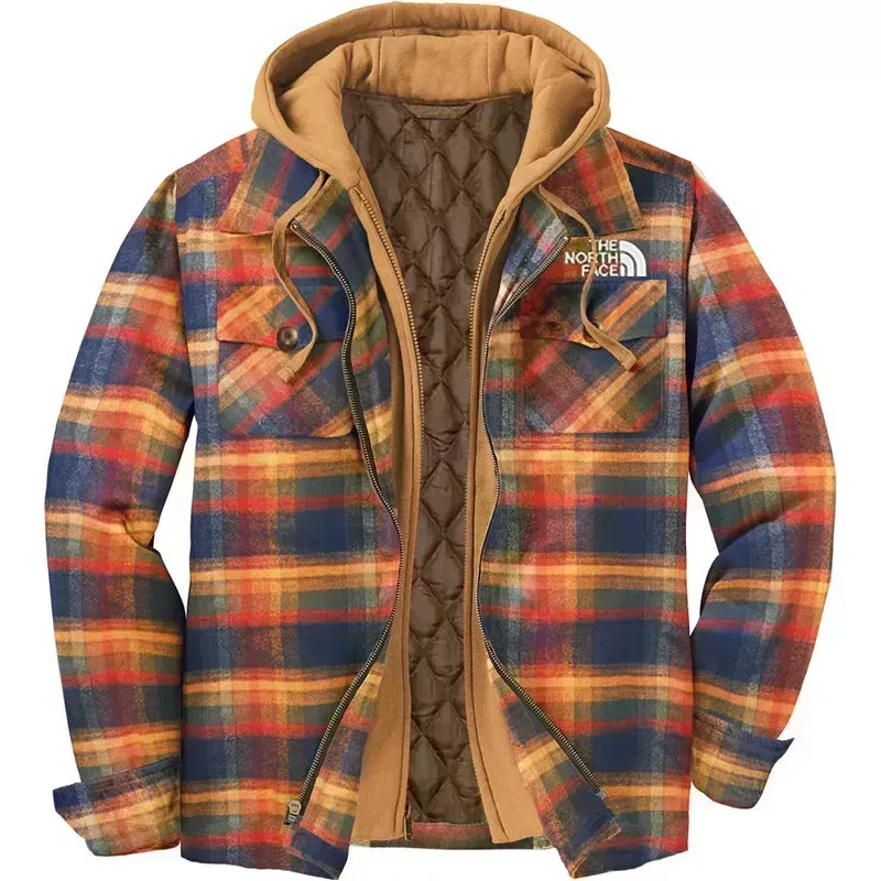 Mens Casual Plaid Winter Fake Two Piece Long Sleeve Coat