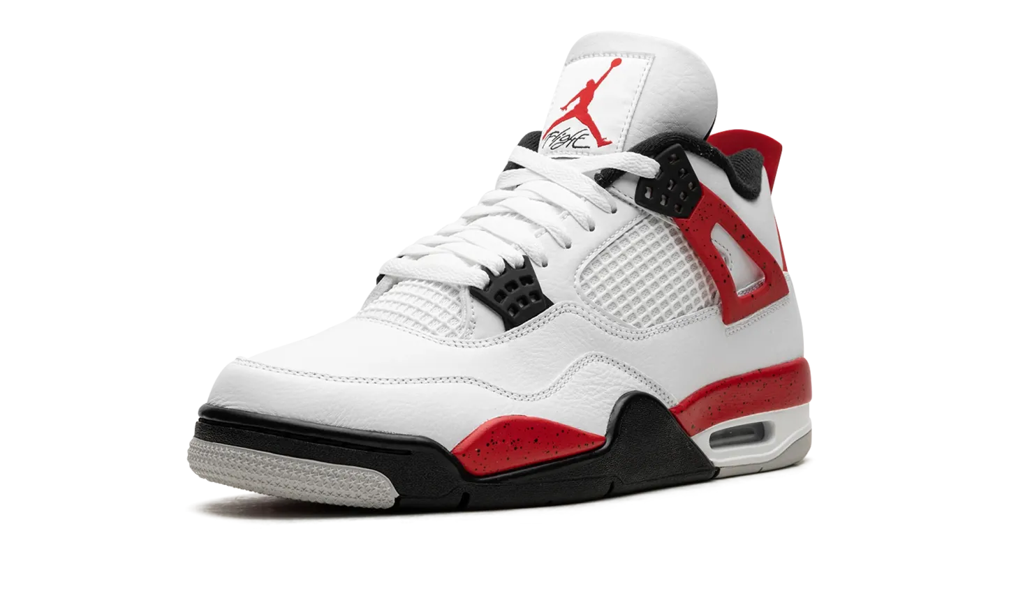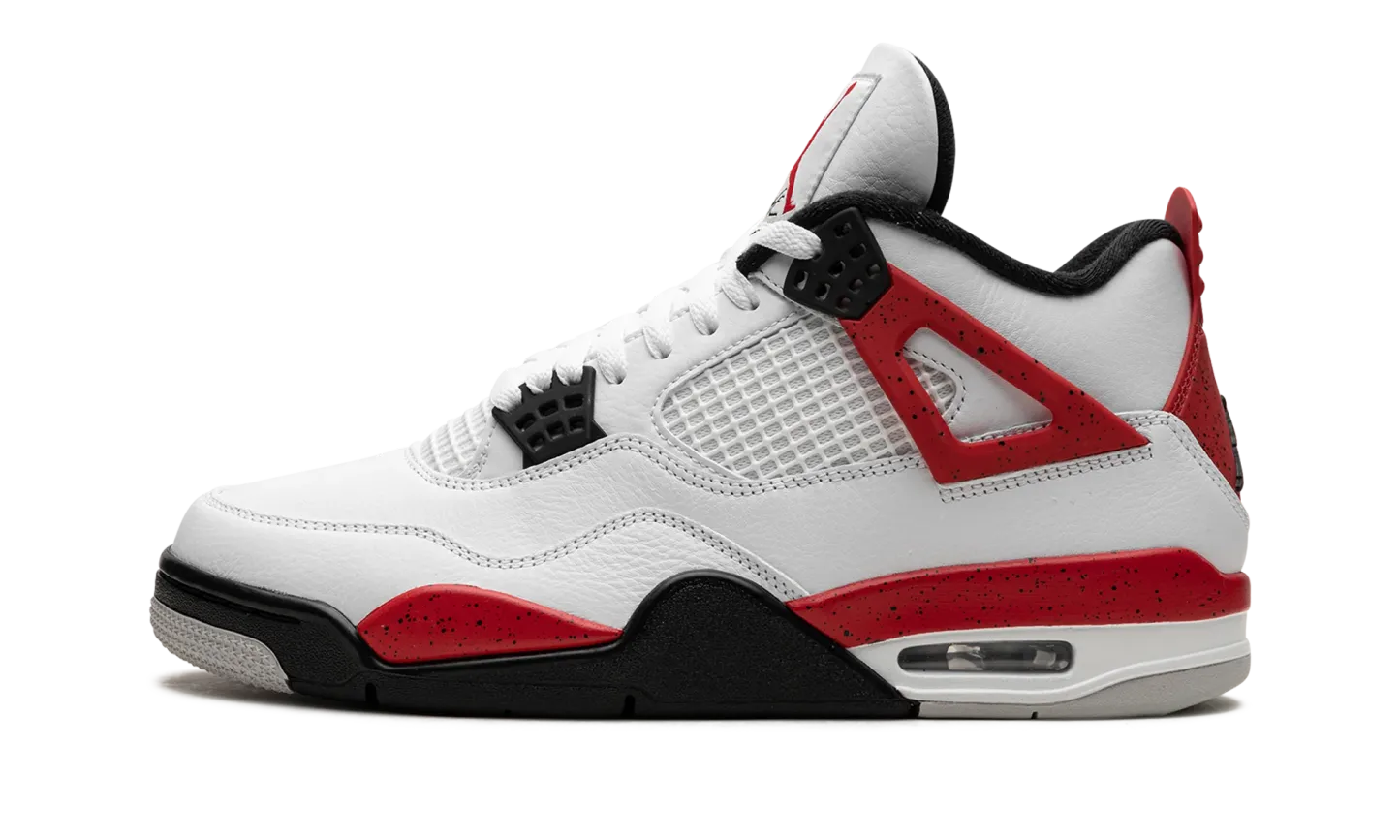 The Air Jordan 4 “Red Cement” is a colorway of the retro basketball shoe inspired by the Jordan 4’s iconic “White Cement” style. The “Red Cement’ Jordan 4 is designed similarly to the model’s original “White Cement” colorway, but with a few key differences. The “Red Cement” features red-based cement detailing while the “White Cement” has grey cement patterning. As for the rest of the design, the “Red Cement” Jordan 4 has a white leather upper with tonal leather overlays and white netting on the tongue and mid-panel. The black plastic eyelets are contrasted by Fire Red-based “wings” with a speckle pattern. The fiery red speckled pattern also appears on the shoe’s mudguard and heel counter. A black Jumpman can be found on the tongue and heel. Release date: September 9, 2023 Red Cement