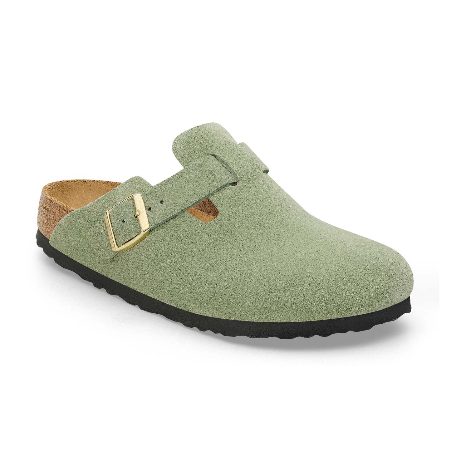 The Birkenstock Boston is a practical classic. Slip them on and you're off! The sophisticated, individual design means the Boston can be worn all year round, giving this style a legendary status for seasonal versatility. Equipped with a strap and buckle that can be adjusted across your instep the Boston clog provides a secure fit. The anatomically shaped footbed and roomy toe box makes them comfortable to wear creating a pleasant environment for the entire foot.