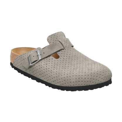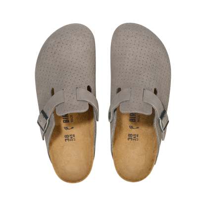 Classic and comfortable, the Birkenstock Boston clog has become a coveted, year-round favourite. This soft, perforated dotted suede leather gives your style new dimension with the material you love most. It all rests on our contoured footbed, for the ultimate in support.