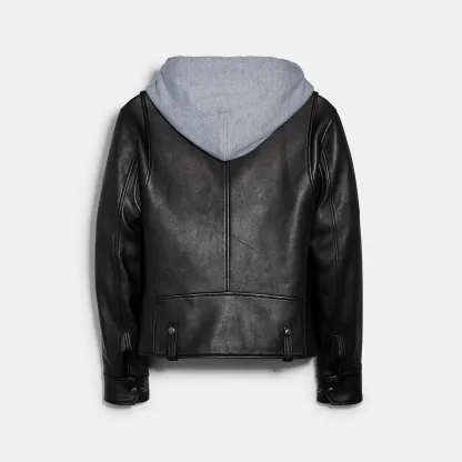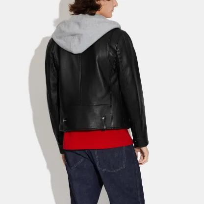 100% lamb leather Lining - 56% polyester 44% viscose Hood - 100% cotton Zip closure Zip pockets Length - 23 3/4 Model is 6'2 (188cm) and wears a size M Style No. C7839 | Outlet Leather Moto Jacket - Black, Size - Medium