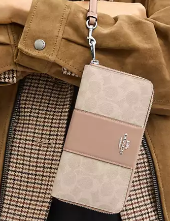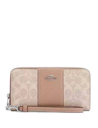 Coach Long Zip Around Wallet In Signature Canvas With Stripe