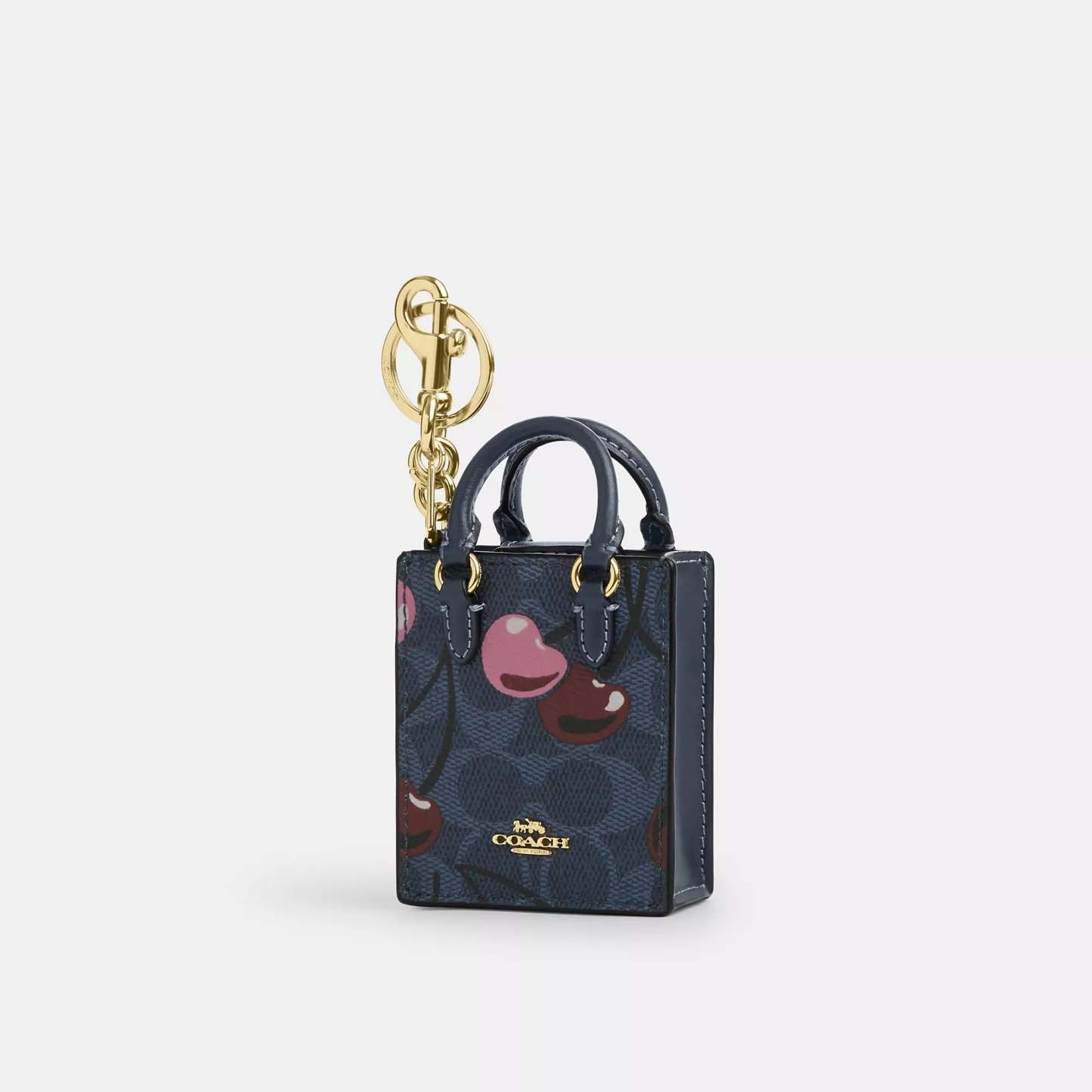 Coach Outlet North/South Mini Tote Bag Charm In Signature Canvas With Cherry Print