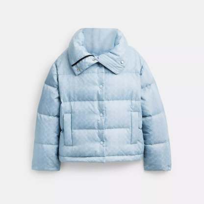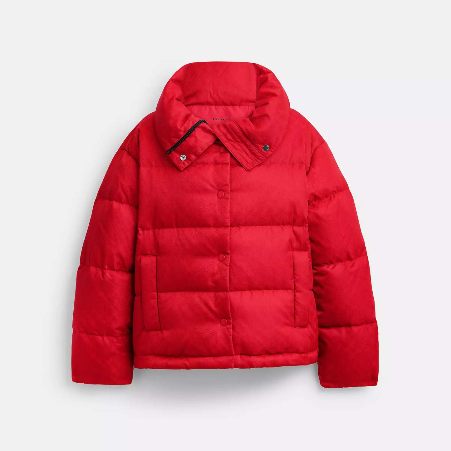 Coach Outlet Signature Jacquard Short Puffer In Recycled Polyamide