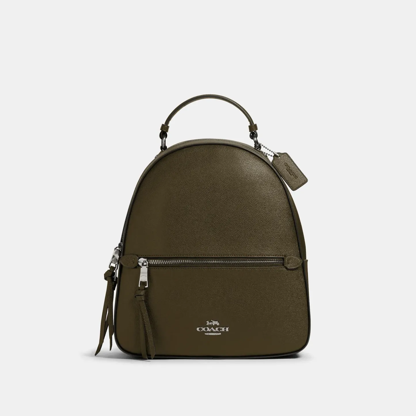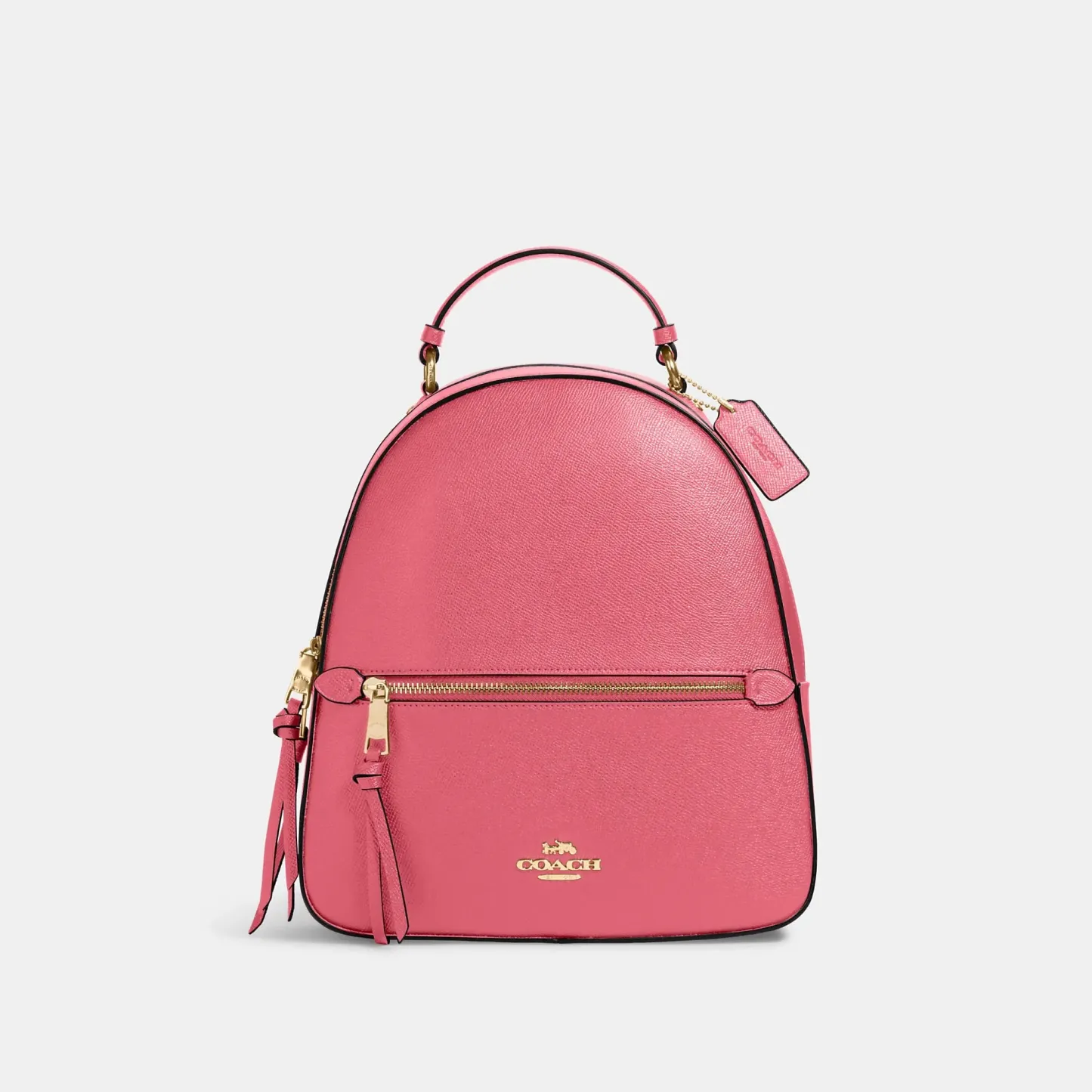 This crossgrain leather Jordyn backpack is perfectly sized for everyday and weekend adventures. Crossgrain leather Inside zip pocket Zip closure, fabric lining Top handle with 2In drop Outside zip pocket Adjustable shoulder straps 10 1/2In (L) x 12 1/4In (H) x 3 3/4In (W)