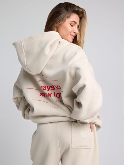 A limited-edition drop celebrating meaningful moments. This premium straight-leg cotton-blend sweatpant features subtle heart embroidery on the hip and "Ways to Show Love" messaging down the leg. Available in three signature shades - Cotton, Crimson & Petal. Each pair is meticulously crafted for comfort while carrying a reminder of life's deepest connections.
