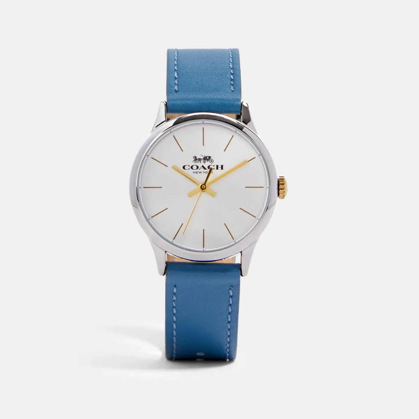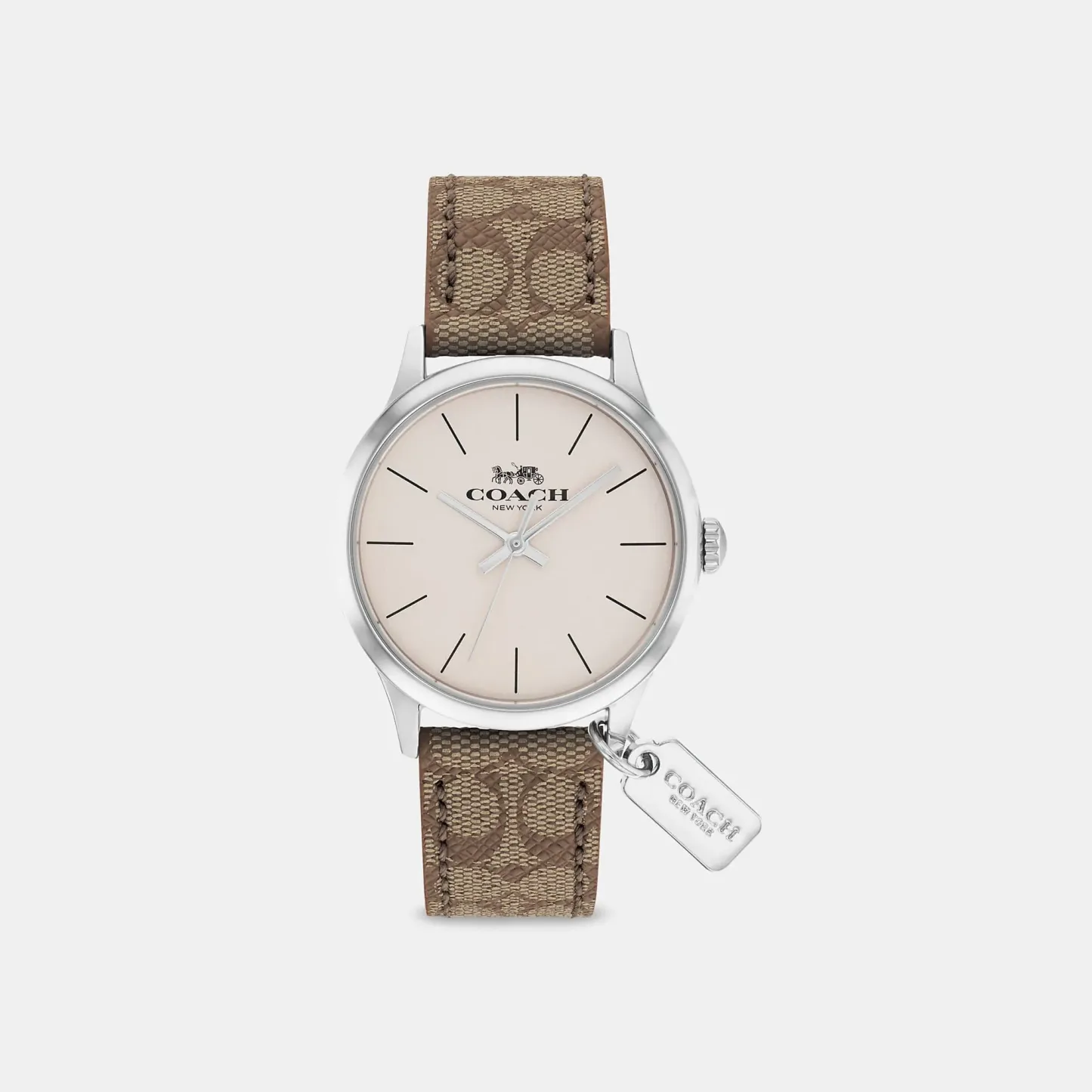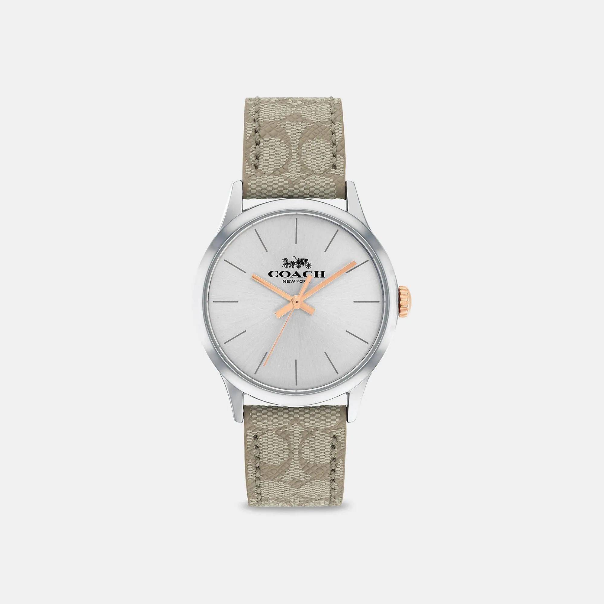 Stainless steel case and Signature canvas strap Approx. case diameter - 32mm Mineral crystal Quartz movement Buckle closure Water-resistant to 99 feet