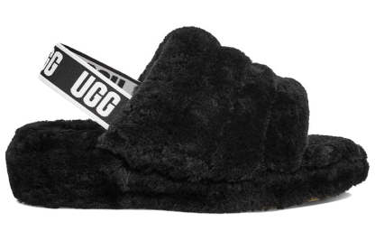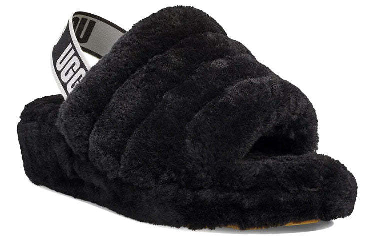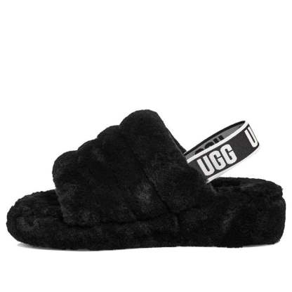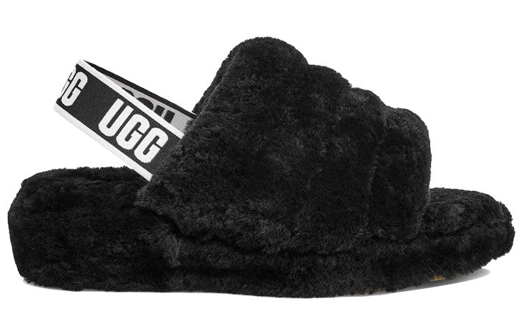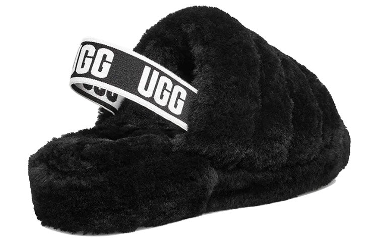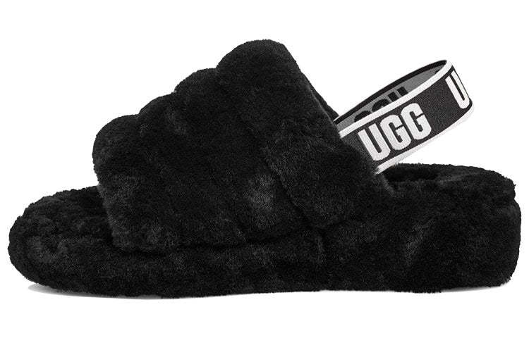(WMNS) UGG Fluff Yeah Slide Thick Sole Slipper Black 1095119-BLK